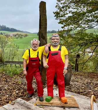 Dutly, der Mann mit den roten Latzhosen, ist ein sogenannter Freigeist. Er macht, was er Lust hat, er macht, wie er es will, macht was er will und alles möglichst schräg. So war er bereit kurzfristig einzuspringen, für eine abgesagte Ausstellung. Seine skurrilen, fantastischen, schrägen Objekte stehen nun erwartungsvoll in der Kirche und warten auf Ihren Besuch.