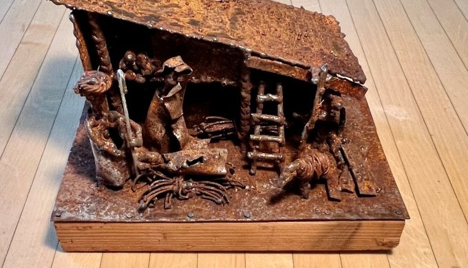 Er schweisst seine Krippen aus Abfallmetall zusammen. Jede der Krippen ist ein Unikat.
